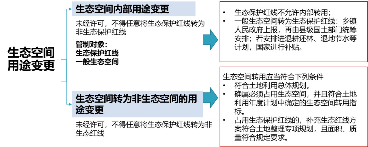 《生態(tài)保護紅線劃定指南》(環(huán)辦生態(tài)[2017]48號),生態(tài)保護紅線原則上按禁止開發(fā)區(qū)域的要求進行管理。嚴禁不符合主體功能定位的各類開發(fā)活動,嚴禁任意該改變用途,確保生態(tài)功能不降低、面積不減少、性質(zhì)不改變。因國家重大基礎(chǔ)設(shè)施、重大民生保障項目建設(shè)等需要調(diào)整的,由省級政府組織論證,提出調(diào)整方案,經(jīng)環(huán)境保護部、國家發(fā)展改革委會同有關(guān)部門提出審核意見后,報國務(wù)院批準。