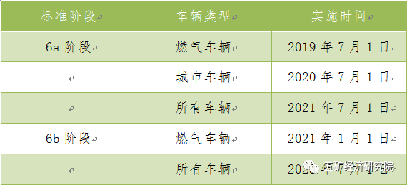 表2 國(guó)六排放標(biāo)準(zhǔn)全國(guó)實(shí)施時(shí)間