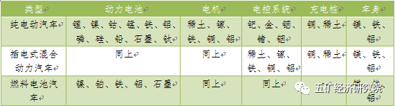 表3新能源汽車(chē)與礦產(chǎn)資源