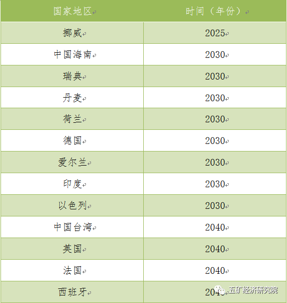 表1 各國(guó)地區(qū)禁售燃油車(chē)時(shí)間表