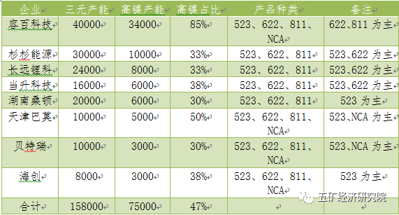 表5 中國(guó)三元材料企業(yè)高鎳產(chǎn)能布局情況