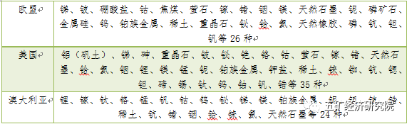 表4 西方國(guó)家關(guān)鍵礦產(chǎn)名單