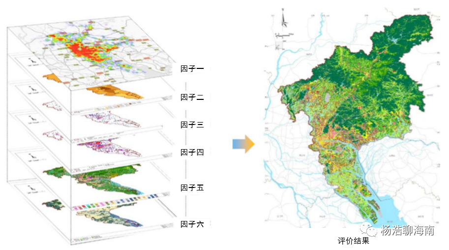 麥克哈格"千層餅"方法的延伸就是今天的GIS中的中的權(quán)重疊加。而在雙評(píng)價(jià)過(guò)程中,單項(xiàng)評(píng)價(jià)階段、集成評(píng)價(jià)階段,都需要使用使用空間疊加方法。此外,雙評(píng)價(jià)過(guò)程中,常用到的量化分析方法還包括:空間插值方法、重分類(歸一化)方法等。
